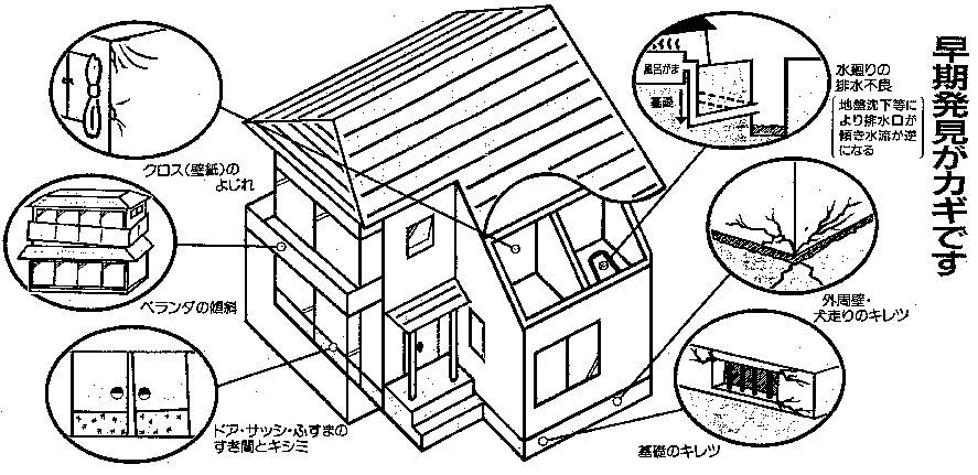 第一期段階 | 束立て床の不陸、布基礎・土間コンクリートに亀裂が入る。 | 3/1000 |